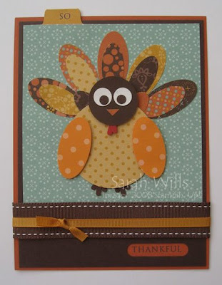 Well I decided to get those punches out again and make a Thanksgiving Turkey – I was inspired from a Pottery Barn Holiday Catalog that came in the mail on Friday which featured a turkey that looked like it had been paper pieced…
