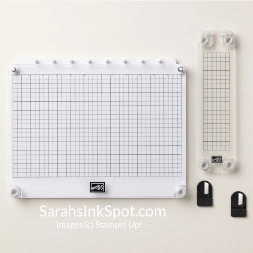 It’s the new stamping alignment tool that makes stamping easier and more accurate. It allows you to stamp precisely aligned images, create repeating patterns and Two-Step Stampin’ images easily, and make multiple projects in minutes – and here it is: